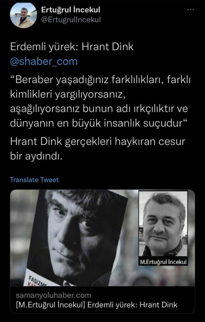 Vicdan bir aydının olmazsa olmazıdır. Onu, 2007 yılında, 19 Ocak Çarşamba günü, soğuk bir İstanbul günü, Türkiye siyasi tarihinin karanlık